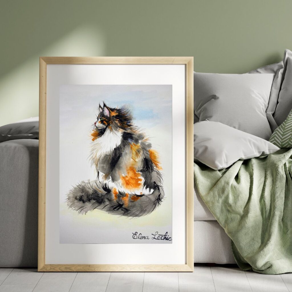 This original watercolor artwork adds a chic, contemporary accent to salons, boutiques, and creative studios, bringing warmth and personality to any setting.