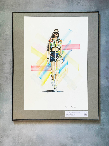 A refined and expressive fashion illustration that embodies effortless style and modern grace. The soft color palette and confident brushwork create a sense of balance between spontaneity and sophistication — perfect for interiors that value both art and elegance.