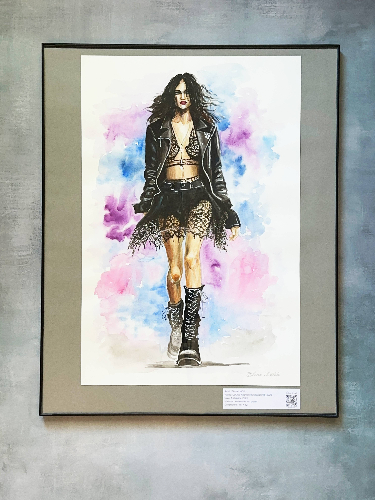 This original fashion illustration captures movement, elegance, and the effortless allure of contemporary style. Each brushstroke reflects the artist’s attention to form, texture, and emotion — celebrating femininity through expressive watercolor detail.