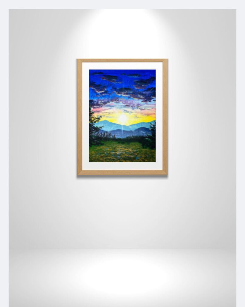 As the sun dips below the horizon, the sky comes alive with colors that speak in soft hues — a quiet harmony of day meeting night. This work captures the magic of twilight, when the world feels both vast and intimate, and nature pauses to breathe in the beauty of the setting sun. A scene that invites stillness and serenity.