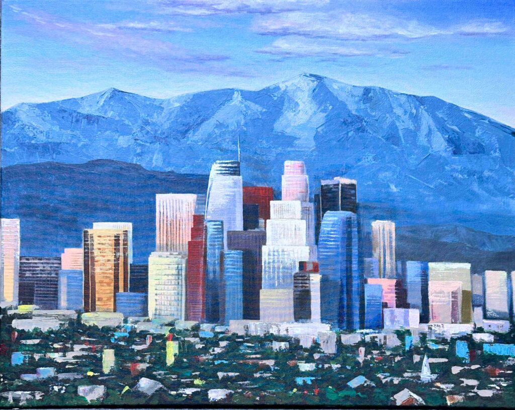 This original acrylic painting brings a sense of depth and sophistication to any space, making it ideal for contemporary interiors, offices, or art collectors who appreciate expressive cityscapes.